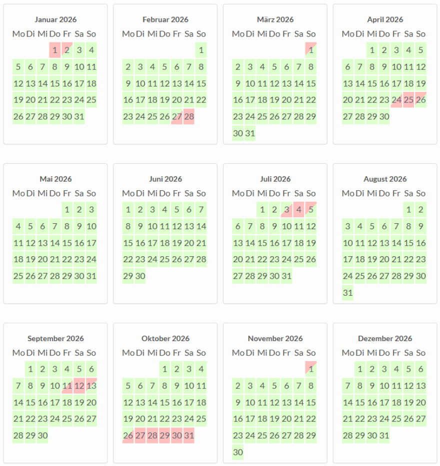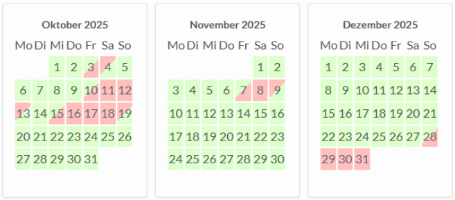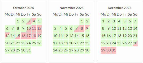 Freie Zeiträume 2025: